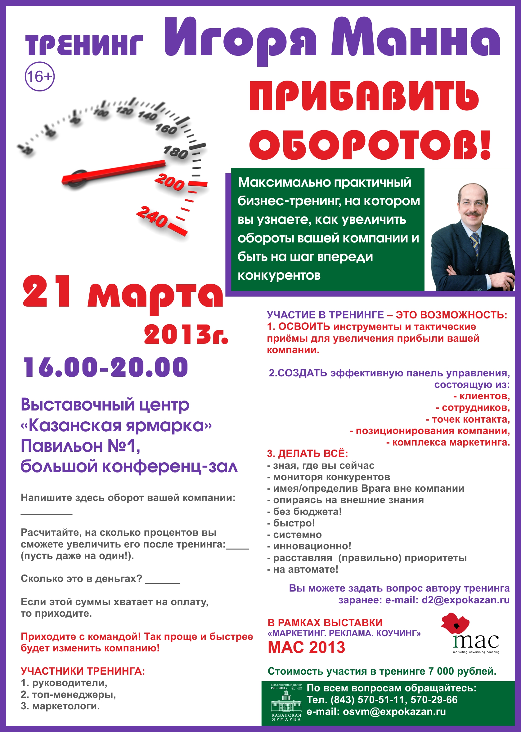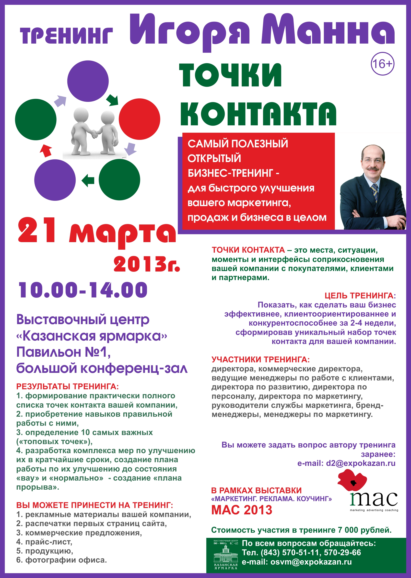 21 марта 2013 года в ОАО «Казанская ярмарка» состоятся бизнес-тренинги «Точки контакта» и «Прибавить оборотов!».